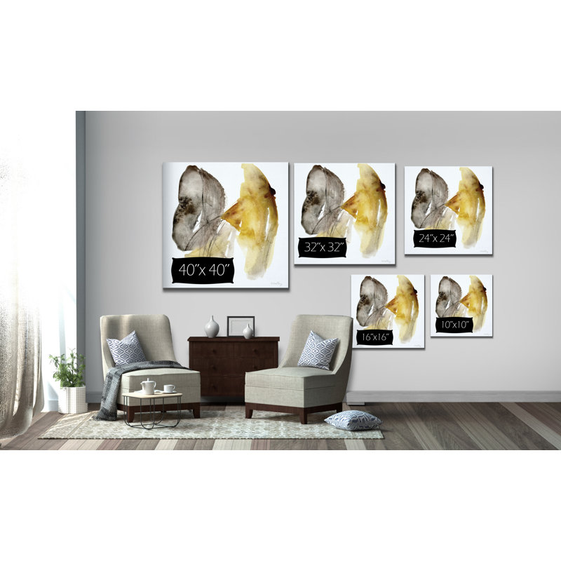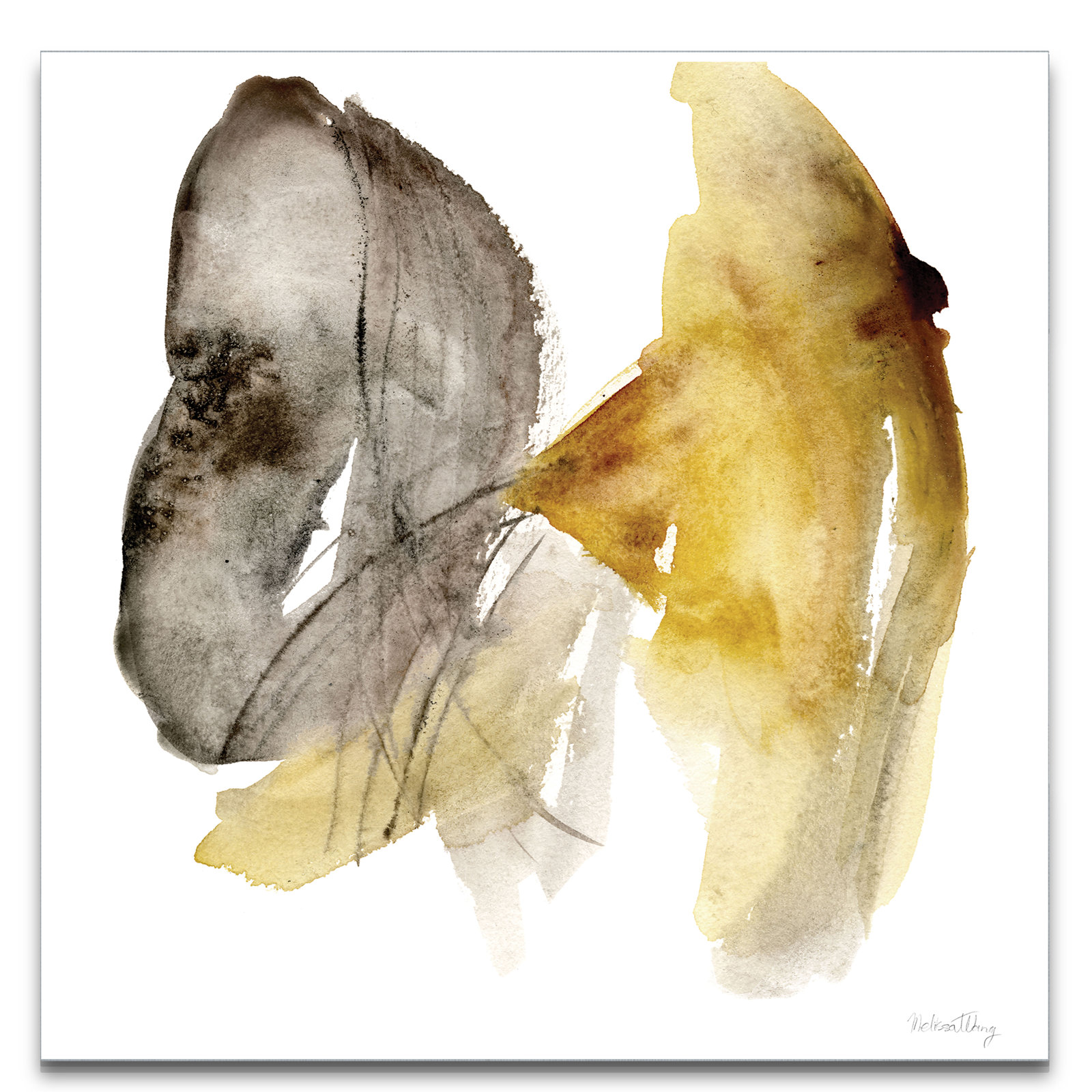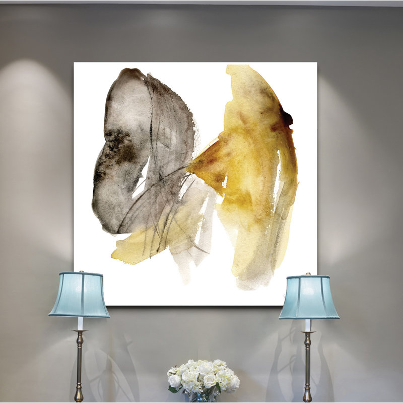 Bring any room to life with this abstract printed painting. Taking inspiration from marigolds, this piece is titled “Calendula I” and shows off energetic brush strokes of gray and yellow, with line de…. Read More.