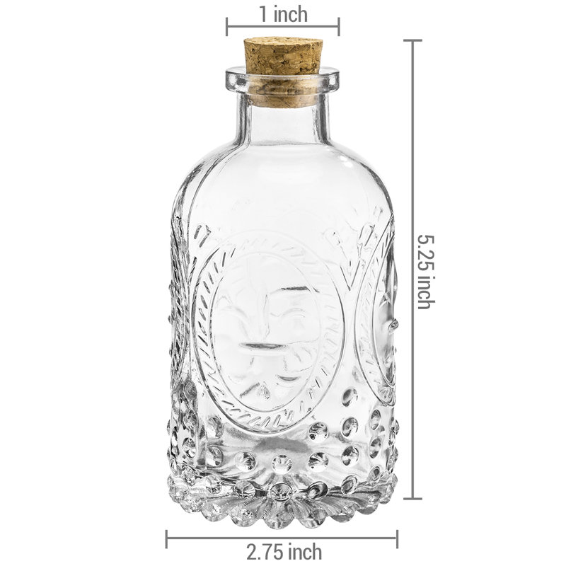 These decorative bottles have featuring an embossed surface and clear cylindrical design, these bottles replicate the shape like an apothecary. These antique containers each include a cork lid perfect…. Read More.