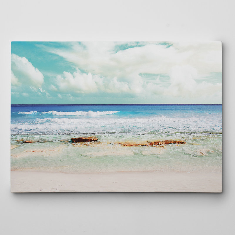 Transport yourself to the serene peace and quiet of an isolated beach with this gorgeous oil painting print on canvas, showcasing crystal clear waters ebbing and flowing from a sandy shoreline under C…. Read More.