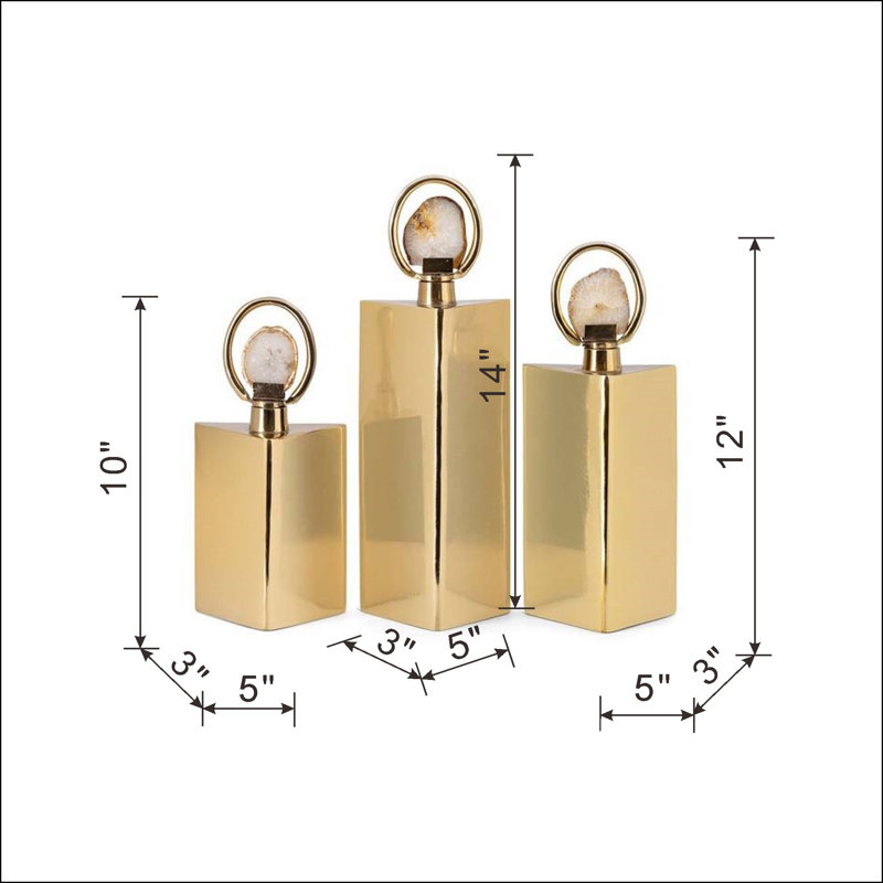 Elevate your design style with the Cannet set of three bottles. These three bottles are expertly crafted of aluminum with a beautiful gold finish. Agate slices set in circular stoppers complete the de…. Read More.