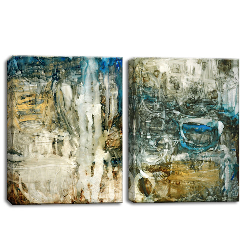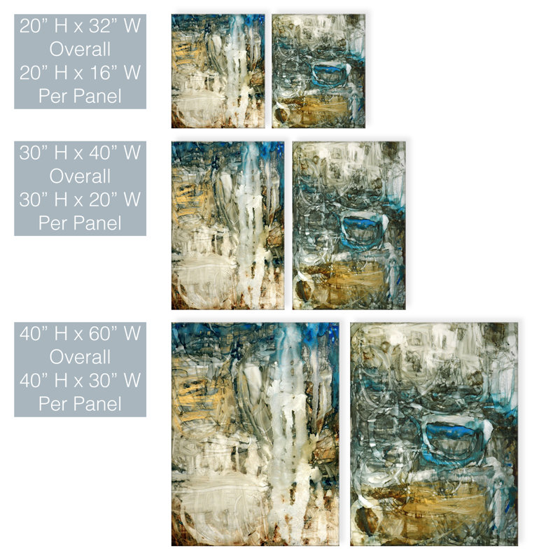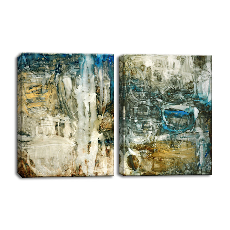 Tonal gorges are exemplified in ‘Canyon Falls I/II’. The soft white and charred ground with blissful blue accents add a unified diversion of pigment against the brown abstracted geometric mods in this two-piece gallery-wrapped canvas art set.