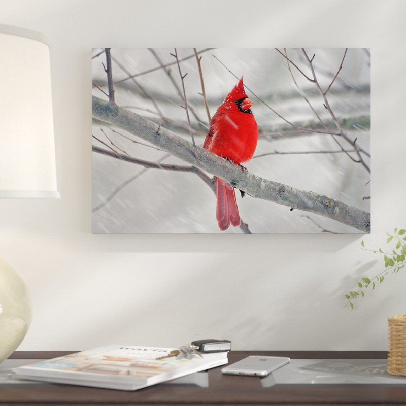 Bring the beauty of nature to your home decor with this lovely print, showcasing a photograph of a cardinal perched on a tree. Its rectangle silhouette blends effortlessly into both casual and formal aesthetics while its natural color palette is perfect set against a crisp white wall for a contrasting look. Play up this piece’s versatility by adding it to a sleek contemporary entryway alongside a clean-lined console table and a gently-tufted storage bench. Dot nearby walls with medallion-inspired accents and a beveled oval mirror for an eye-catching display, then match it with metal typographic decor for a dash of dimension. Equally at home rounding out the guest room gallery wall, this lovely print brings statement-making style to your well-appointed home.