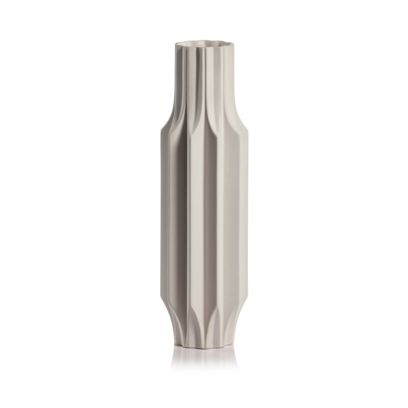 The most striking thing about this vase is the eye-catching ribbed texture. This vase is a great way to add some personality to your living room, office, or bedroom, it is sure to make a statement. The ceramic material is durable and has a matt-white finish.