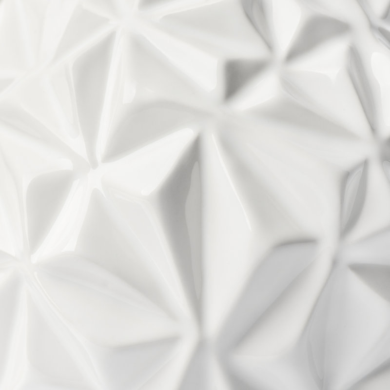 Sculptural and refined, this handmade ceramic vase draws inspiration from the organic folds of crumpled paper. Bold faceted angles create a modern, architectural silhouette that’s brought to life by a sleek gloss white glaze. Compact in scale yet rich in texture, the vase measures 6 inches wide and 5.25 inches tall€”perfect for styling on a shelf, bedside table, or layered into a coffee table vignette. Whether filled with a few stems or displayed on its own, it adds a contemporary, artful presence to any room.