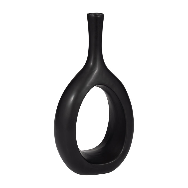 Ceramic and Stoneware Vase with Modern Sculptural Open Oval Design and Artistic Silhouette for Contemporary Decorative Display