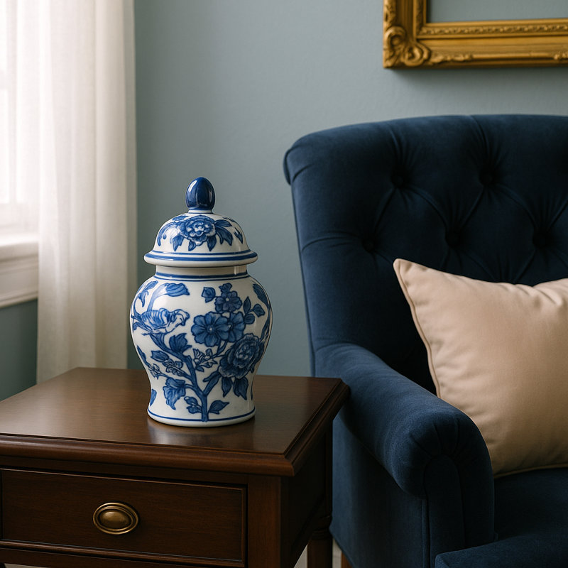 Bring timeless charm and graceful elegance to your interior with this Chinoiserie-style decorative jar, thoughtfully crafted from high-quality ceramic and stoneware for durability and style. Perfect for enhancing traditional and glam home decor, this accent piece blends seamlessly into any bedroom, living room, office, or entryway. Its versatile design makes it a functional storage solution or a captivating standalone centerpiece, solving the need for both beauty and purpose. Whether displayed on shelving, a mantle, or a console table, it adds curated sophistication to your space and elevates your overall aesthetic. Ideal for design enthusiasts seeking a refined yet practical accent, this jar is a statement of taste and personality. Update your home with a classic touch that never goes out of style and order yours now for fast and easy decor transformation.
