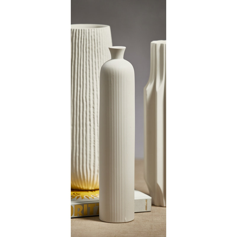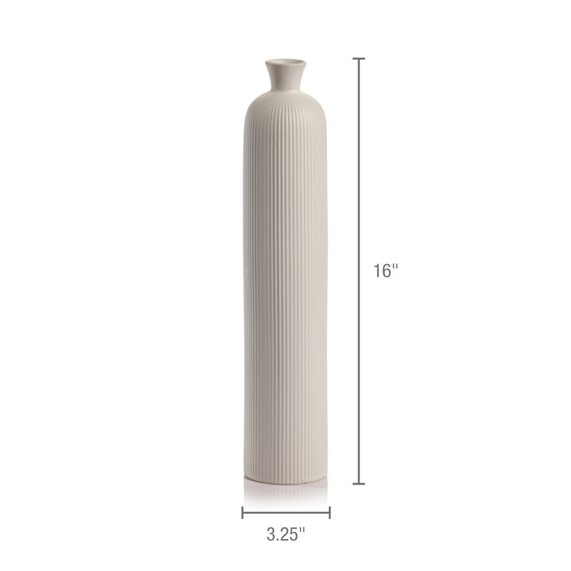 The ornate yet simplistic design of this tall ceramic fluted vase will add a touch of elegance to any space. This vase will be a focal point in any room. The vase has a vivid matt white finish which pairs with the simple shape.