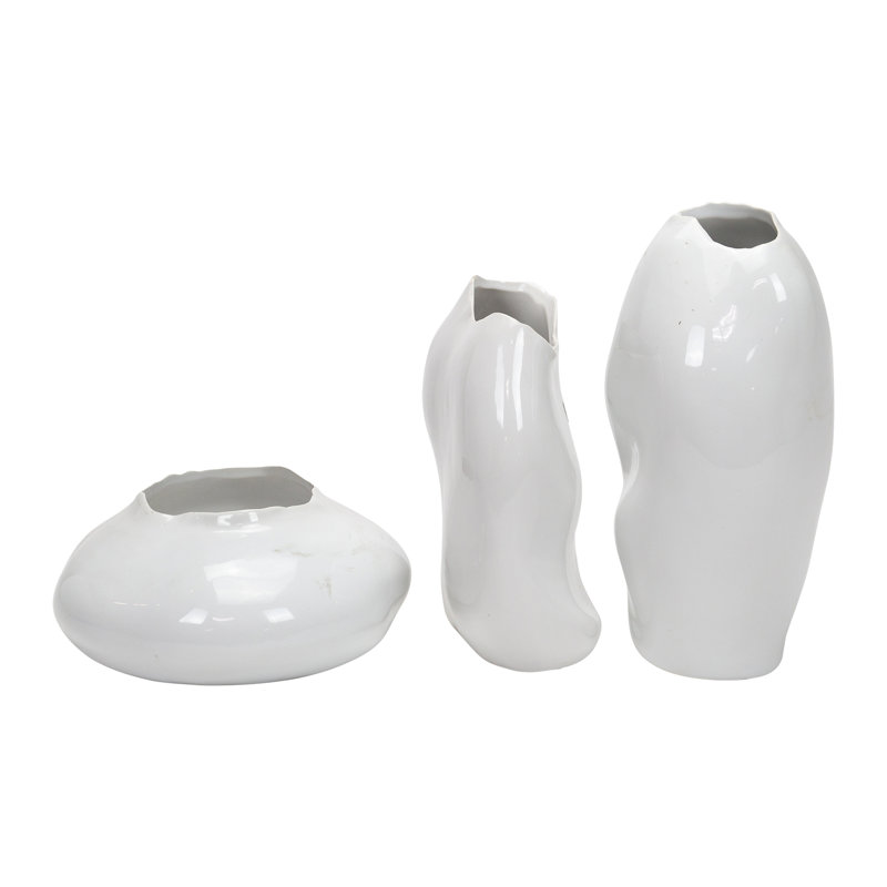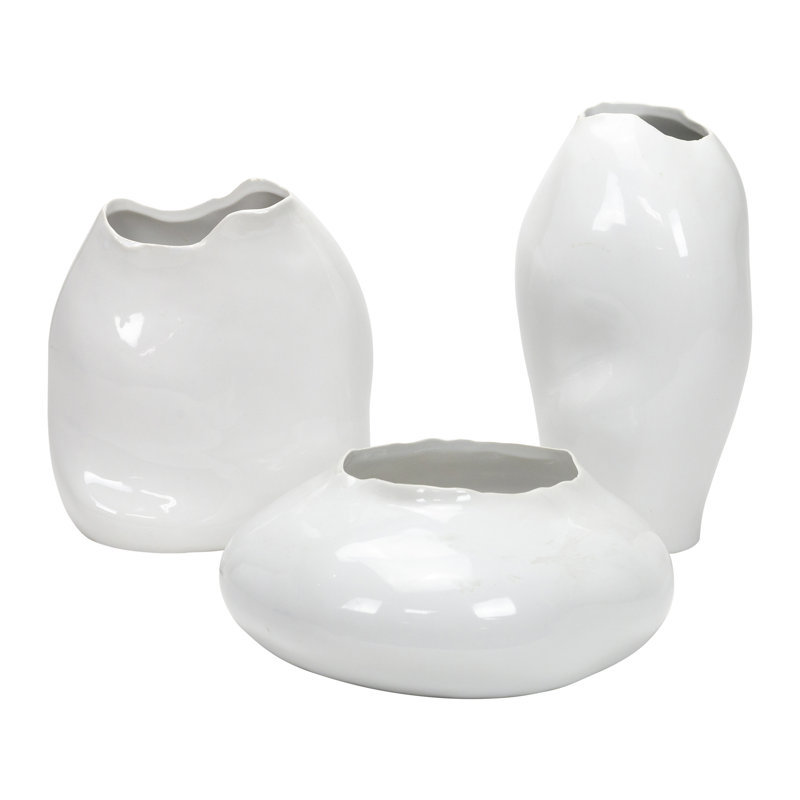 Bring a touch of modern elegance to your home with this set of three uniquely shaped ceramic table vases. These vases are ideal for showcasing your favorite flowers or decorative botanicals throughout…. Read More.