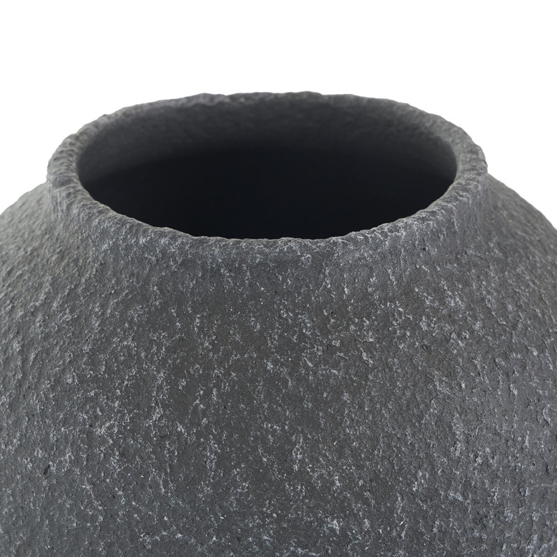 - This oval home decor vase features a unique textured whitewashed finish that transforms its matte black exterior into a dark gray hue