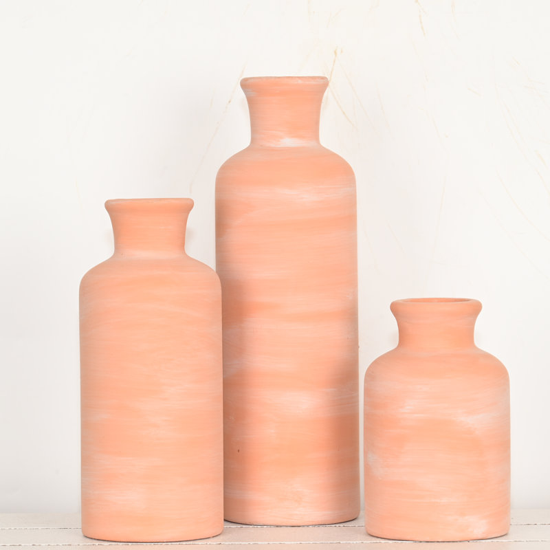 Elevate your home decor with the Ceramic Vase 3 Piece Set. This stunning farmhouse-style set features adding a refined rustic charm to your living spaces. Perfect for any season, these small vases are versatile enough to be used as statement pieces or with faux florals, stems, and greenery. Whether placed on your tabletop, mantel, shelf, or patio, this set brings elegance to any room. Made from ceramic, these high-quality, long-lasting vases are ideal for home decoration or special occasions such as weddings or housewarming gifts.