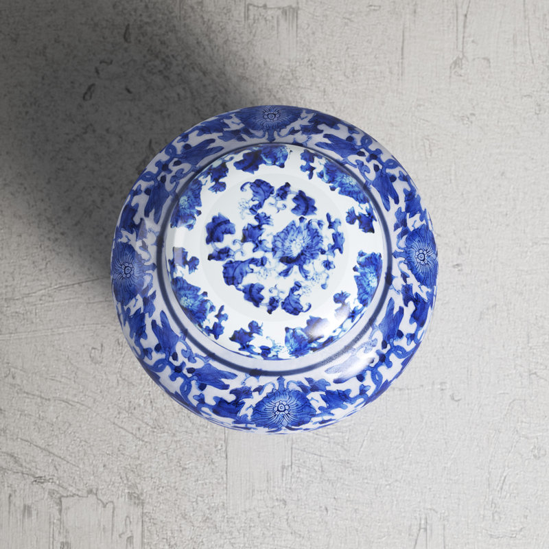 - Decorate the home with this blue and white ceramic ginger jar with removable lid that features a classic shape and pattern