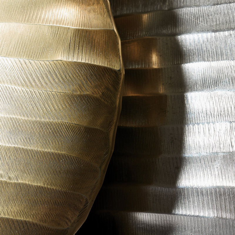 The chased oval vase is made of chiseled aluminum with an antique brass finish….. Read More.
