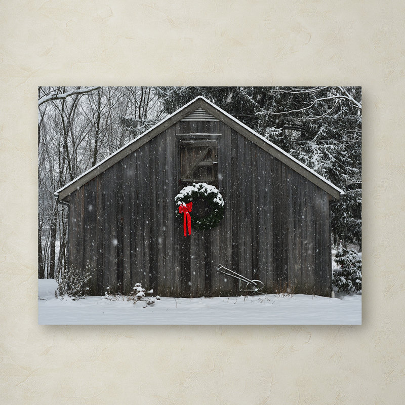 Bedroom ,or Office Décor – 24×32 ,Wrapped Canvas Wall Art – Kurt Shaffer 'Christmas Barn in the Snow' Wall Art for Living Room |