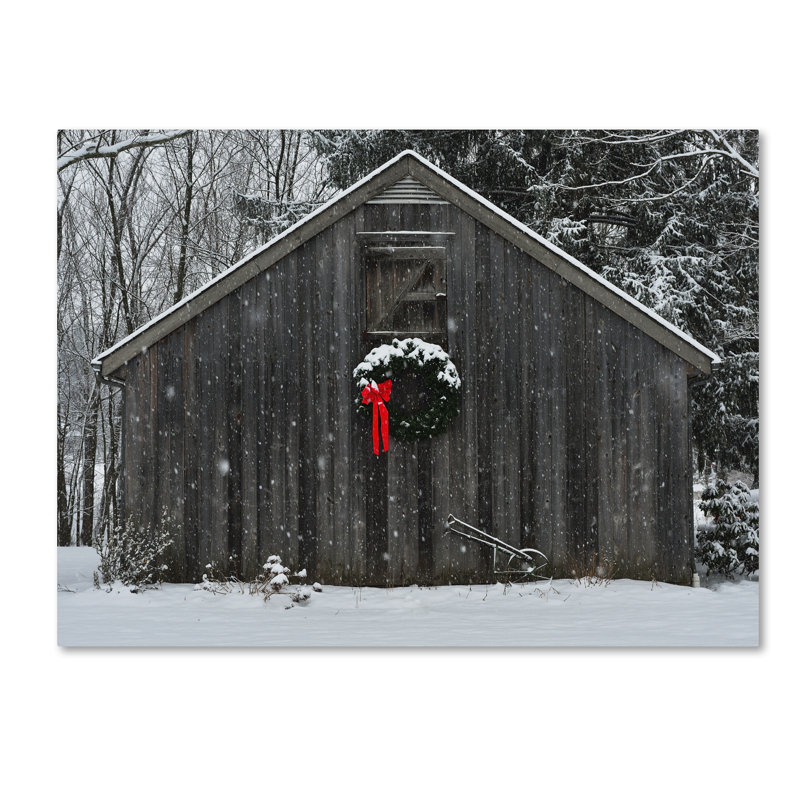 - Theme: A red bow on a wreath, on a barn in the snow