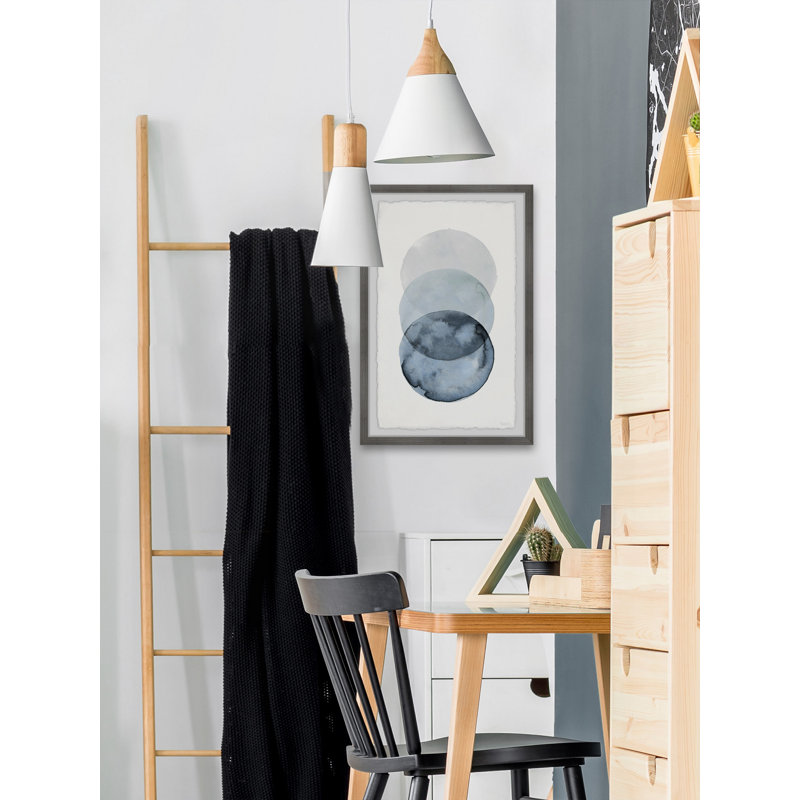 This abstract art delivers a celestial feel to your bathroom, hallway, or bedroom. Titled “Circles Overlap,” this art was originally painted by Parvez Taj with watercolors. It features three overlapping circles in shades of muted blue growing progressively lighter, invoking the phases of the moon. Made in the USA, this piece is printed on paper. We love that this piece has a versatile orientation, so it can hang vertically in your bathroom or horizontally in your hallway. Plus, it comes with mounting wall hooks for easy installation.