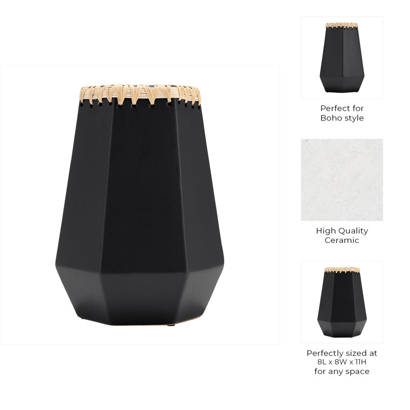 Enhance your decor with this artisan-inspired decorative vase crafted from durable ceramic and stoneware, designed to infuse your home, office, bedroom, or living room with boho elegance and natural charm. Its hand-finished details and eye-catching woven accent deliver a unique blend of texture and character that complements eclectic, minimalist, and earthy interiors. Perfect for showcasing dried florals, pampas grass, or standing alone as a sculptural statement, this vase helps elevate shelves, mantels, and desks with its modern-meets-organic style. Built with a solid structure that resists tipping, it solves the common pain point of balancing aesthetic appeal with stability and function. A thoughtful addition to personal interiors or a stylish housewarming gift, this vase offers versatility and long-lasting appeal. Bring warmth and artistic flair to your favorite space today with this boho-style decorative vase that makes a lasting impression.