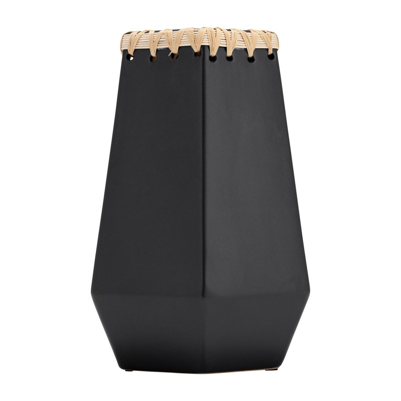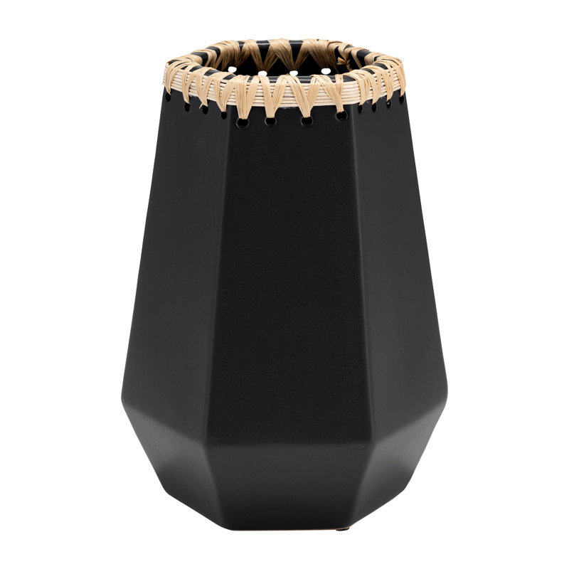 Claudene Boho Stoneware Ceramic Vase with Handwoven Detailing and Geometric Design – Modern Decorative Accent for Eclectic Interiors.
