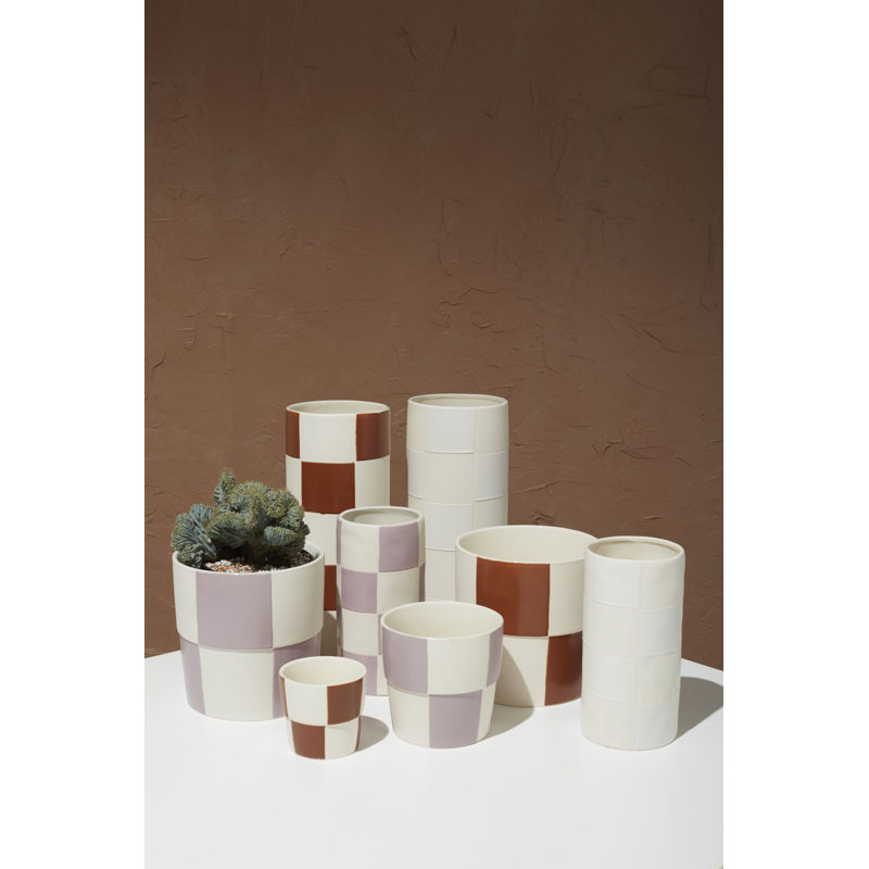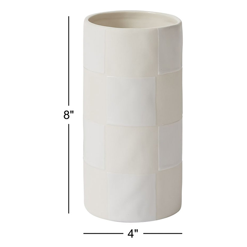Simple and effortless. Our table vase features a dynamic checkerboard pattern and muted tones that go with just about any style or color scheme. This piece also strikes a cylinder silhouette and has a…. Read More.