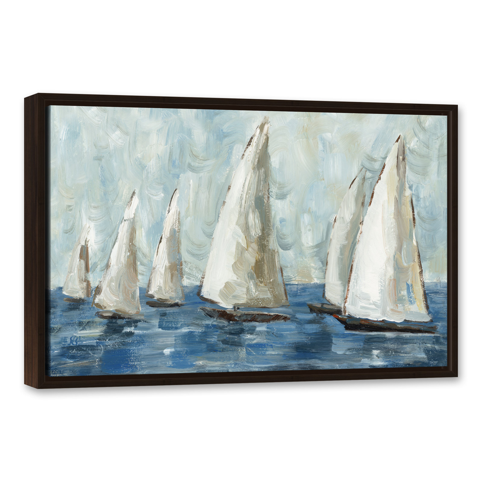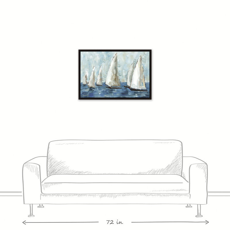 This painting print brings nautical style and a soothing palette to your living space. Originally created with acrylic paints, the piece is printed on canvas. It depicts a sailboat race in serene white and blue hues, with stylized brushstrokes giving it an impressionist feel. This print comes in multiple size options to suit your space. With its sea-inspired design, it complements coastal and traditional decor styles alike. Best of all, wall-mounting hardware is included for easy setup.