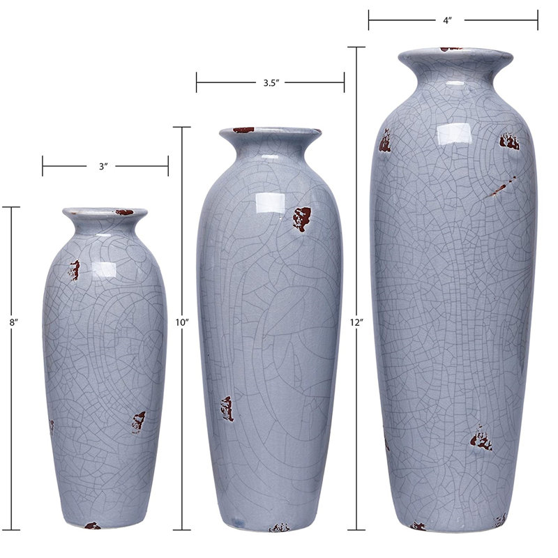 Set of three ceramic blue vases. Vases measure: Small 3″ x 3″ x 8″, medium 3.5″ x 3.5″ x 10″, large 4″ x 4″ x 12″. For decorative use only. This is a great gift able item. A vase is more than a prett…. Read More.