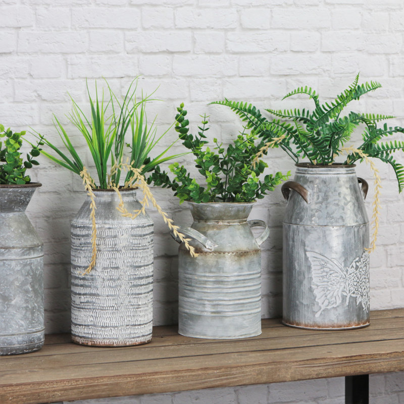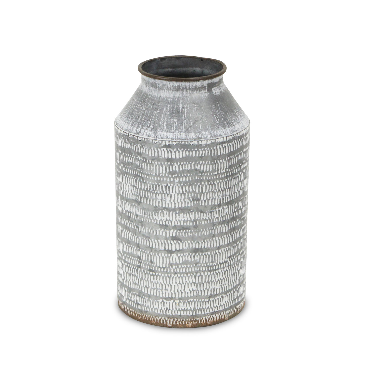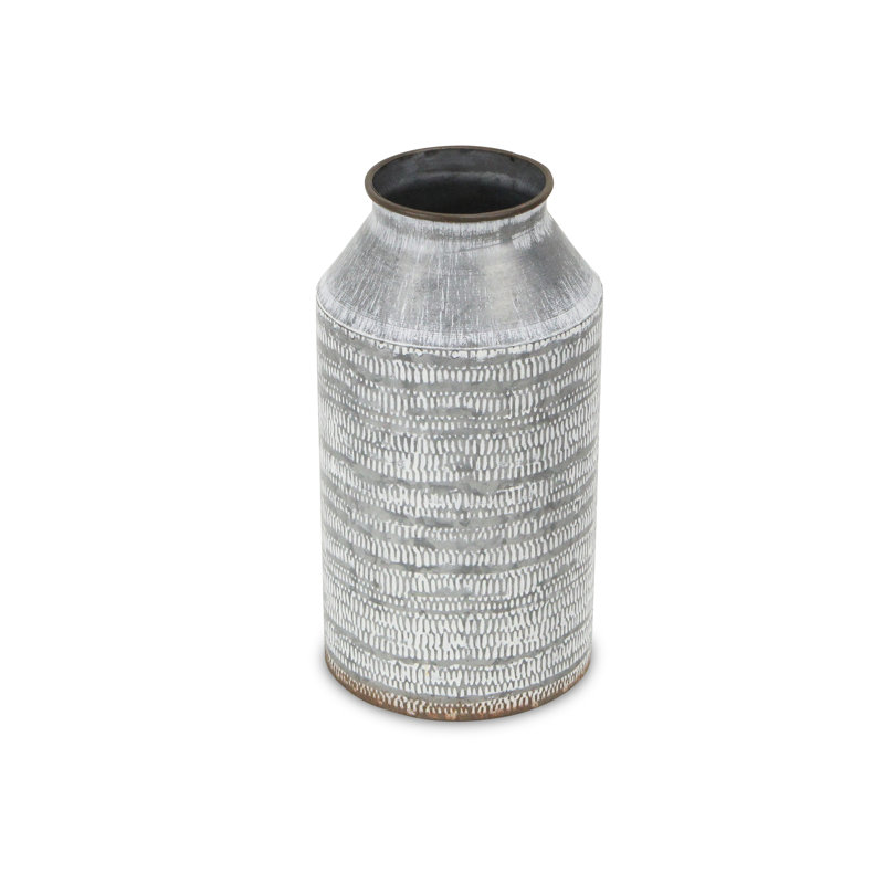 Enhance and organize your space with a multifunctional and stylish storage option. This piece features jug design with a white washed, seed pressed texture and is made with an all galvanized metal con…. Read More.
