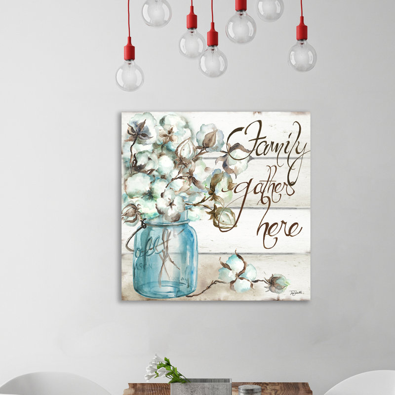 ” Cotton Boll In Mason Jar Family Gathers Here ” by Tre Sorelle Studios