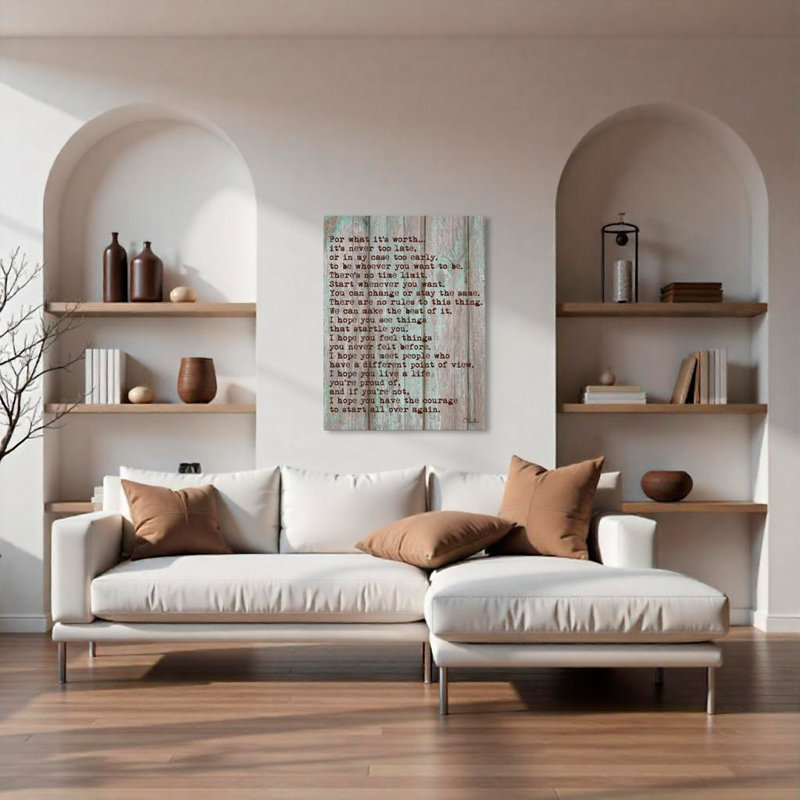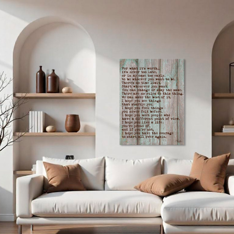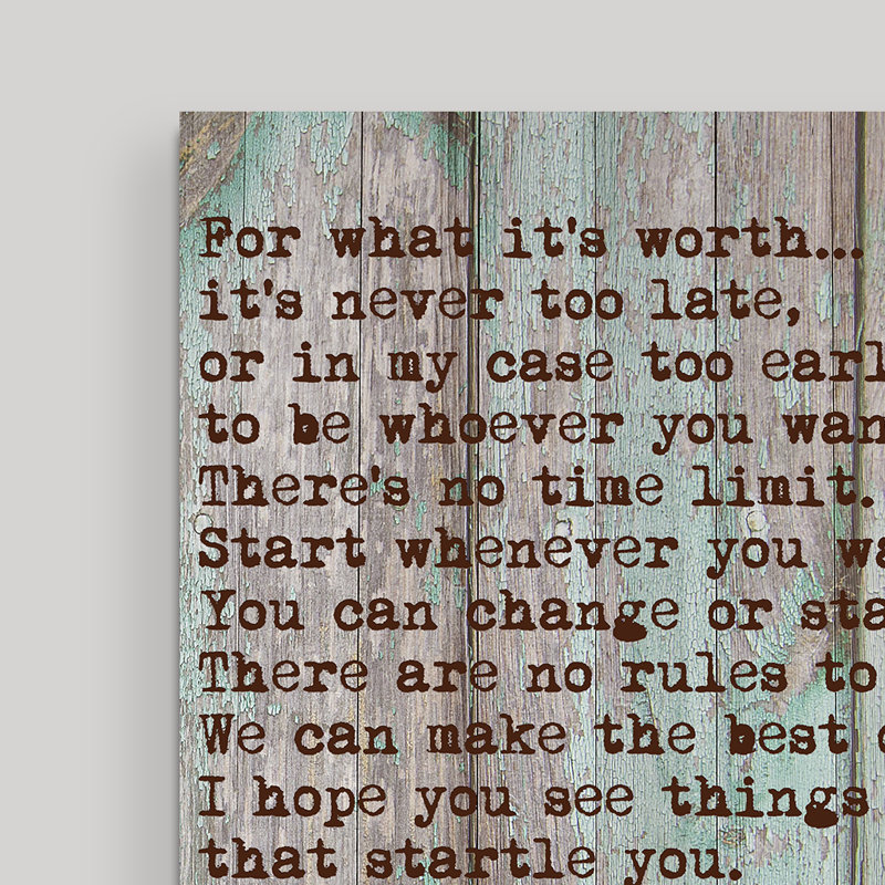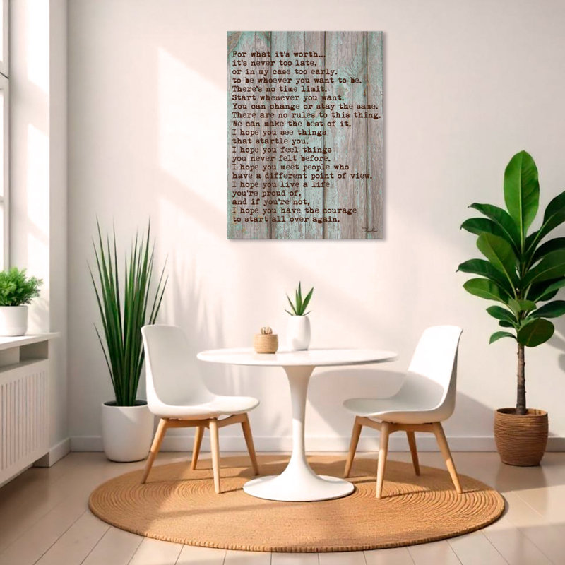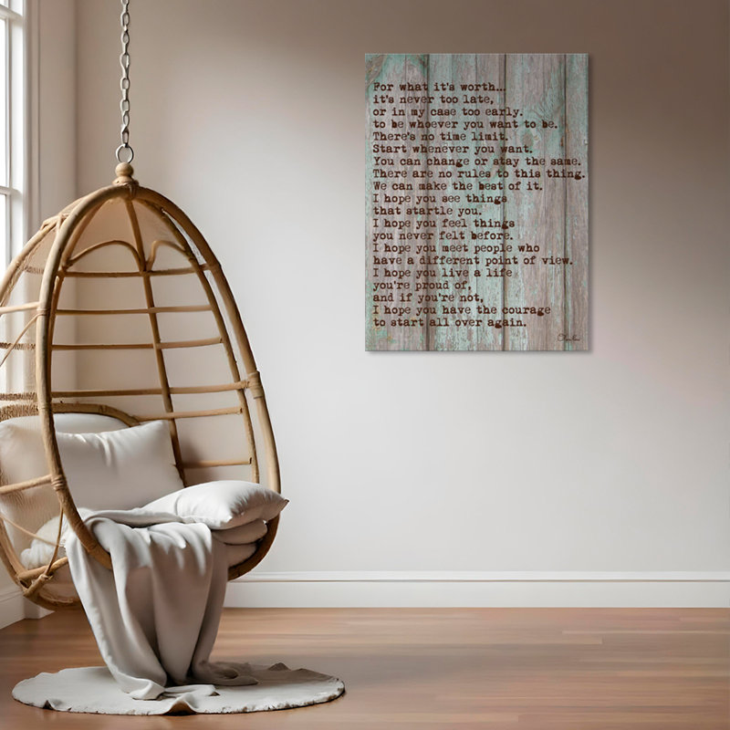 This textual art canvas print brings inspirational words and rustic style to any space. This rectangular piece features a quote from author F. Scott Fitzgerald printed in black in a typewritten style …. Read More.