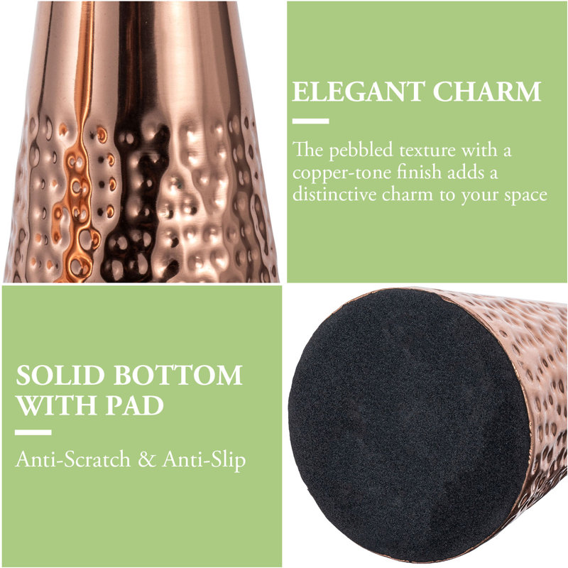 - Crafted with care in India, this set tapered metal vases in a stunning finish and hammered pattern is perfect for creating beautiful floral arrangement centerpieces.