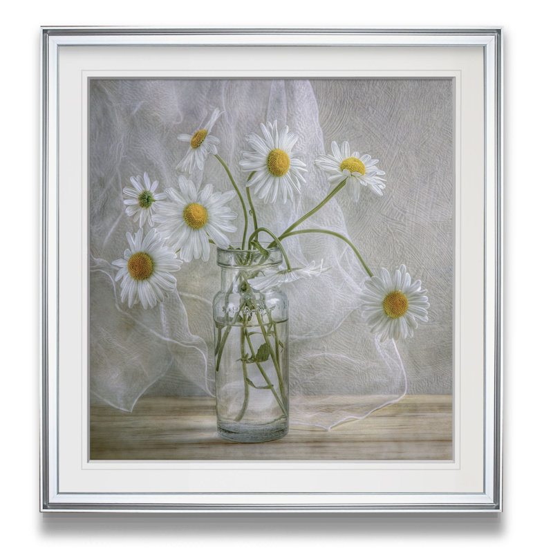 Add a touch of nature to your space with this photographic print of daisies, featuring a blend of white, gray, and yellow hues. This square wall art print is perfect for adding a touch of tranquility …. Read More.
