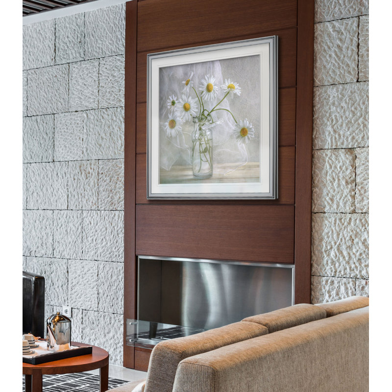 Add a touch of nature to your space with this photographic print of daisies, featuring a blend of white, gray, and yellow hues. This square wall art print is perfect for adding a touch of tranquility to any room, whether displayed in your living room, bedroom, or hallway. Printed on canvas using archival giclee inks, this piece is designed to maintain its vibrant colors for years to come. The print comes ready to hang with wall mounting hardware and a solid wood 1.5″ stretcher bar, all hand-cut and assembled for a high-quality finish.