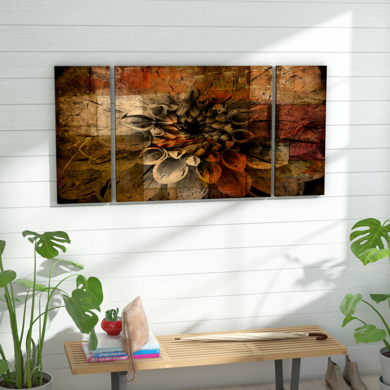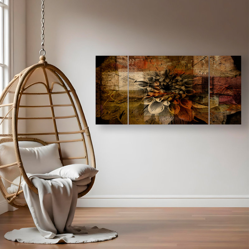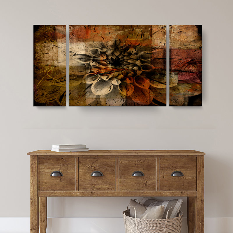 Walls looking a little bare? Plain? Drab? A budget-friendly piece of wall art is just the thing to fill in the gaps and spruce up your space. Take this three-piece set of wall art, for example, a close-up image of a flower with abstract patterns and a warm color scheme. It is printed on UV and water-resistant canvas and is gallery-wrapped for a contemporary look. It arrives ready to install with wall mounting hardware. It is perfect for hanging out at home or in a professional setting.