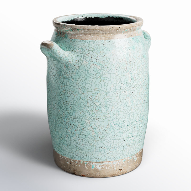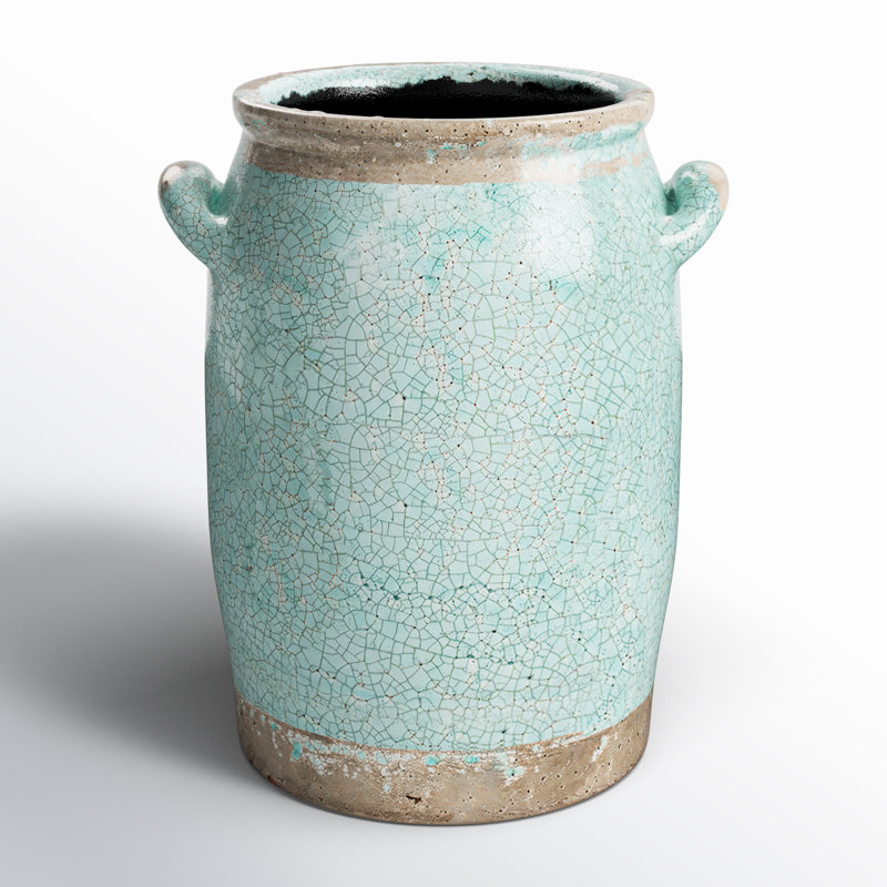 Bring boho inspiration and artful appeal into your home with this handcrafted ceramic table vase, alluring addition to your decor whether it’s staged inside on the mantel or outside on a side table. Its simple silhouette blends easily into any existing arrangement, while its turquoise and brown tones lend your space a subtle splash of color. Lead-free and watertight, this design can also display a bouquet of freshly-picked blooms. Plus, this is a great piece for the outdoor patio.
