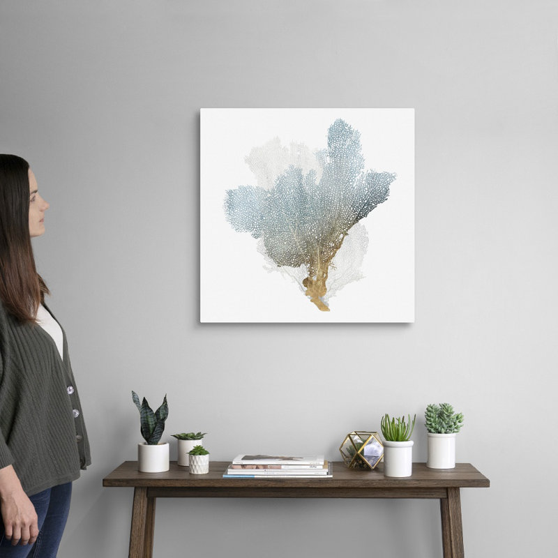 This painting print adds the finishing, beachy touch to your coastal living room, bedroom, or home office. Originally an acrylic painting by Isabelle Z, it’s a reproduction printed with UV-resistant archival inks on wrapped canvas for a look worthy of a gallery. The design features a sprig of intricate coral done in blue, gray, and gold hues against a clean white background. We love that this wall art comes with mounting hardware, so it’s ready to hang over a desk, headboard, or sofa right out of the box.