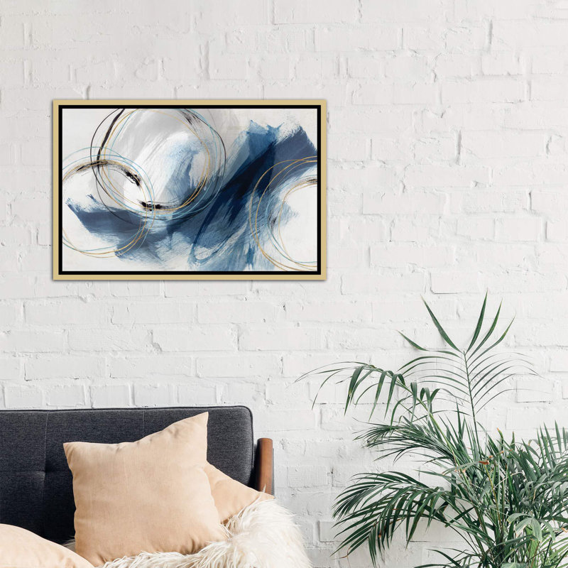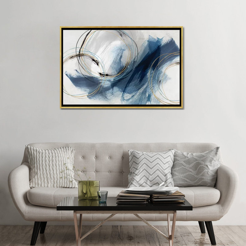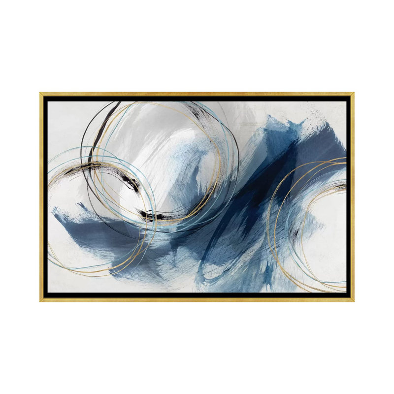 This rectangular painting print features classic brushstrokes and stunning circular patterns for a modern abstract look with plenty of glam style. Reproduced from an original work by Isabella Z, it comes in bold black, silver, and astral blue hues that heighten this piece’s sense of movement and dimension. Titled “Detour,” this artwork comes in a variety of size options, so you can find the best one to suit your space. It also arrives ready to hang right out of the box.