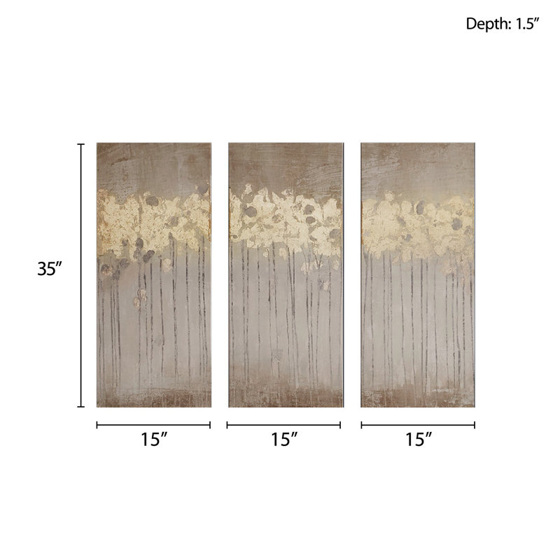 Dewy Forest Gold Foil Abstract 3-piece Canvas Wall Art Set