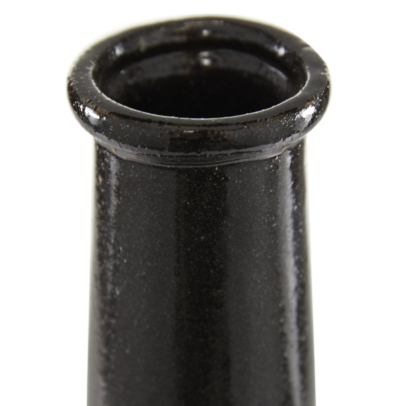 - Decorative tan and black vase with a glossy glaze fired over matte-finished porcelain