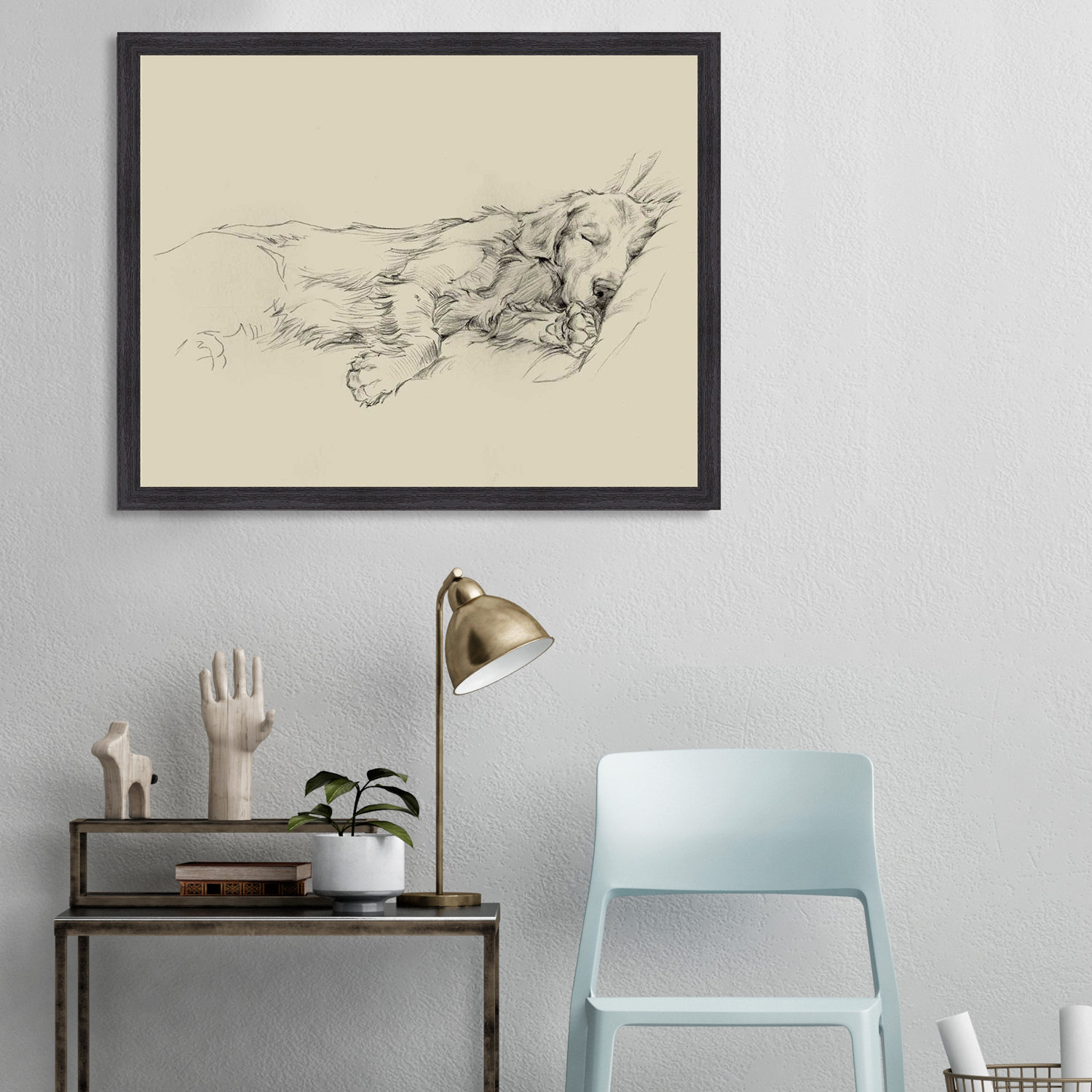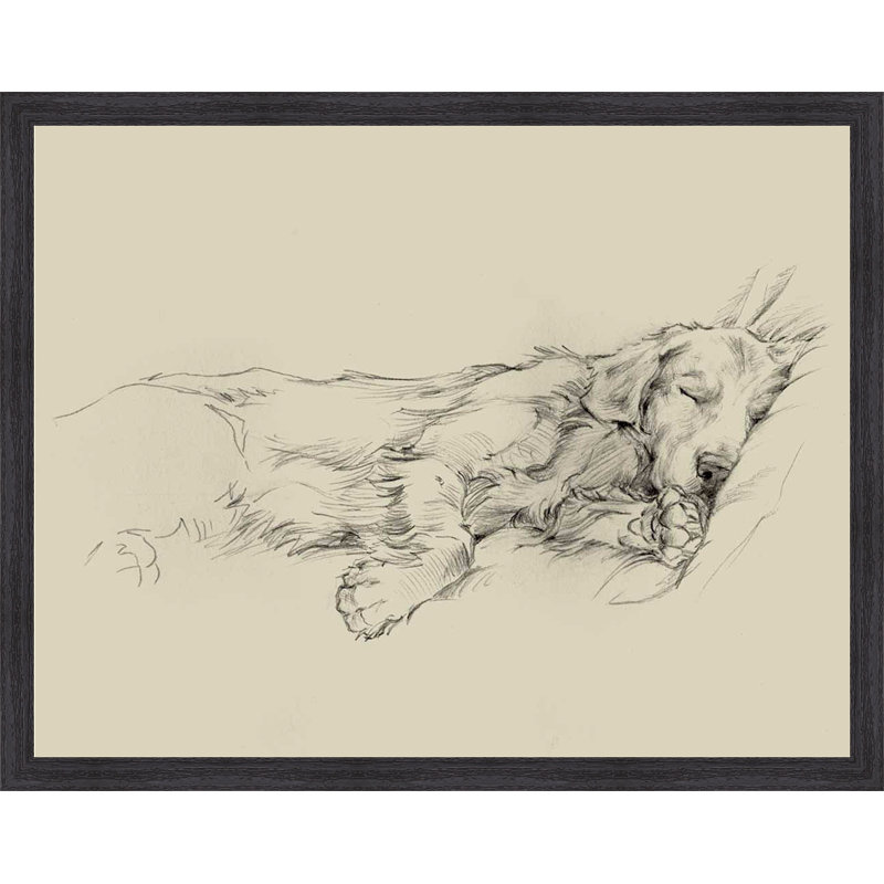 This ‘Dog Days III’ Framed Drawing Print features high-quality paper print, framed in a black grain effect wooden frame. Adorable pencil drawing of man’s best friend taking a nap. This a beautiful piece of framed artwork that will look great in the dog lover’s home. Hanging hardware included.
