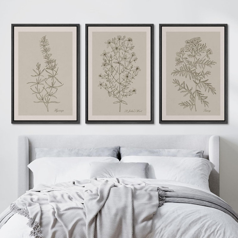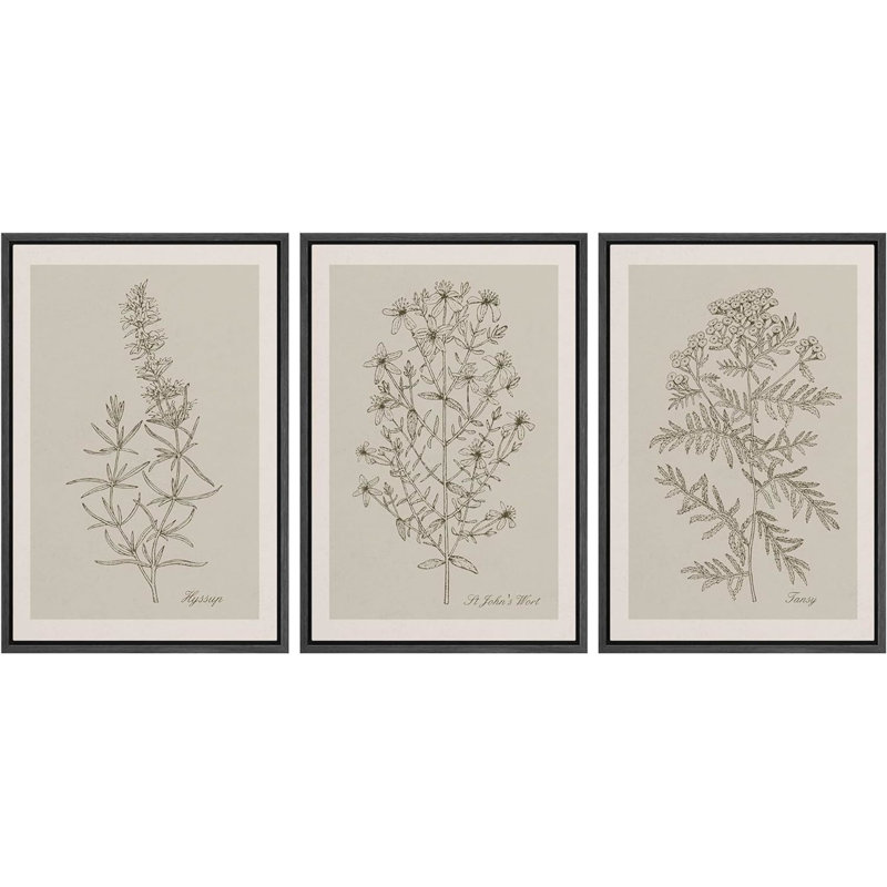 Duotone Vintage Flowers Neutral Floral Botanical Minimalist Framed Canvas 3 Pieces Print Wall Art