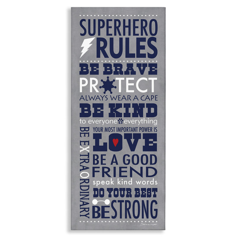 Durante Superhero Rules Typography Kids Wall Décor