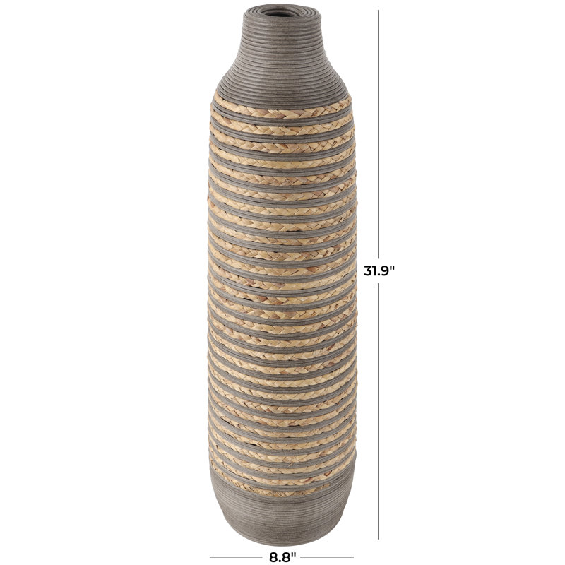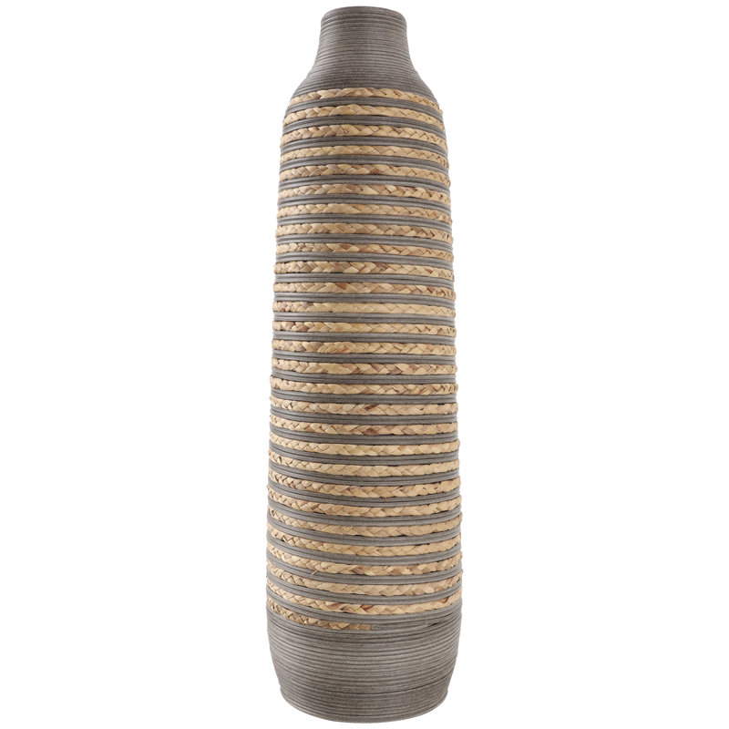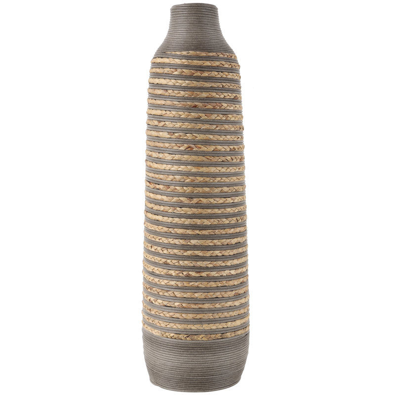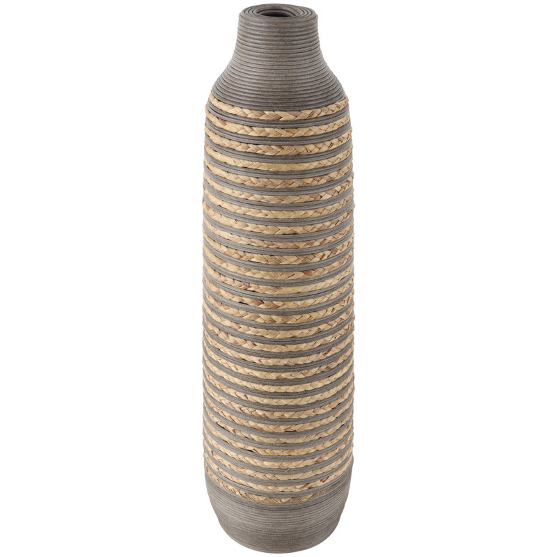Dutton Brown Seagrass Handmade Braided Decorative Vase with Layered Gray Paneling