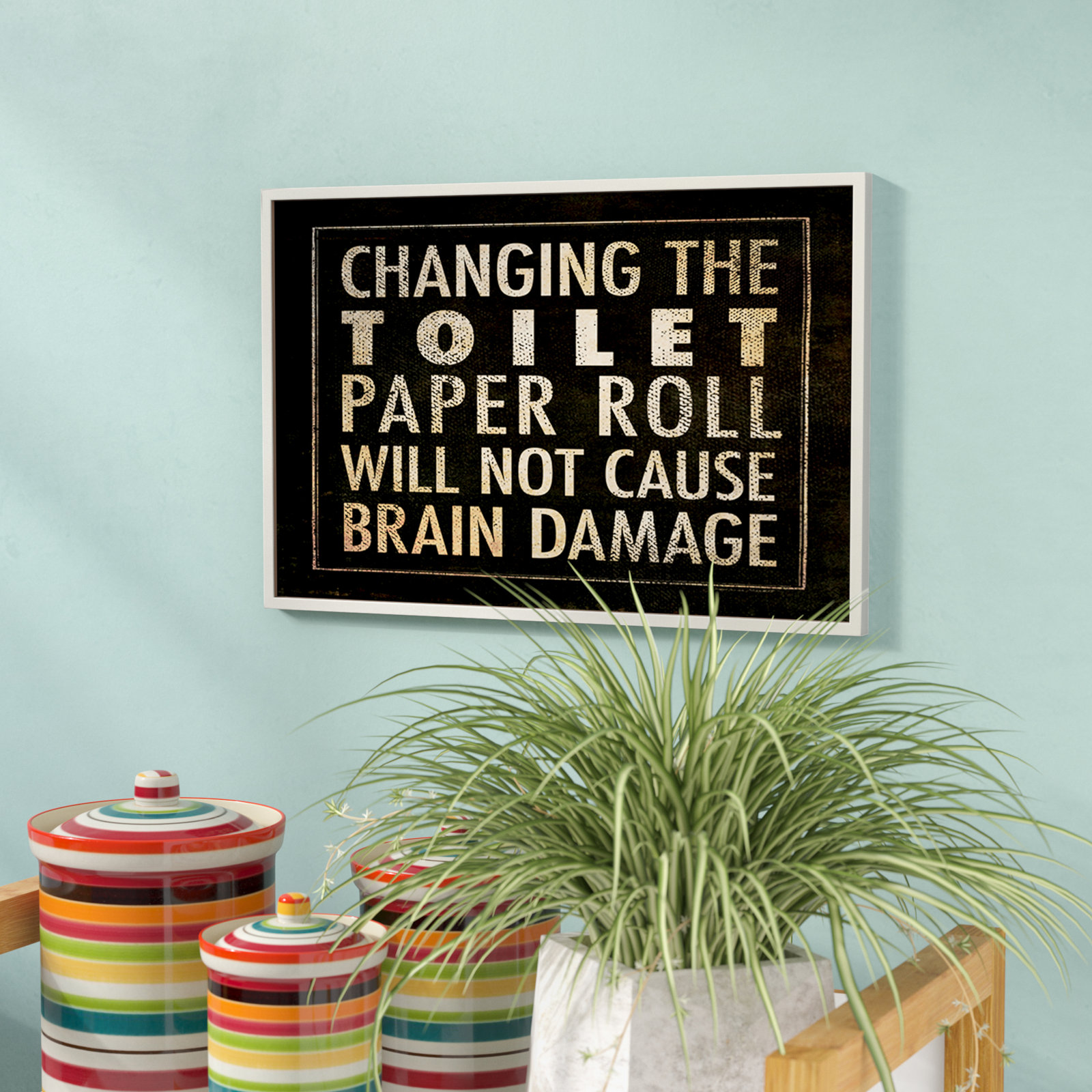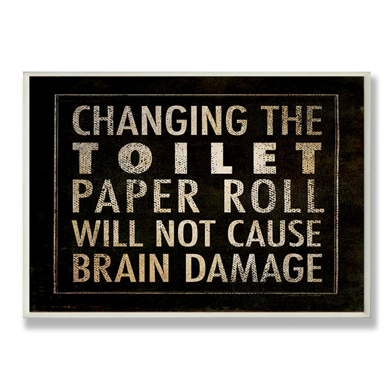 As edgy as it is entertaining, this textual art print is sure to cause some chuckles! In bold, distressed print, the words “Changing the toilet paper roll will not cause brain damage” are printed in g…. Read More.