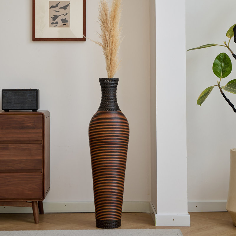 Eibhinn 39″ Tall Floor Vase, Two-tone Hand Woven Rattan Finish, Large Flower Decorative Vase
