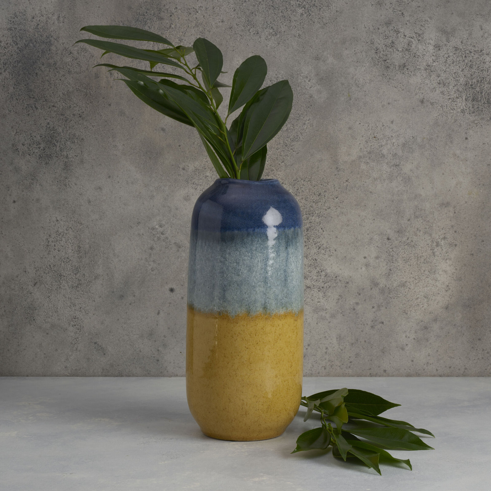 This Two-tone Ceramic Vase by Elements is perfect for showcasing faux flowers, greenery, feathers, and more. The blue and tan design mimics the ocean meeting the sand, bringing a nautical look to your decor. This coastal vase is the perfect accent piece for any tabletop piece of furniture, and makes a great gift for housewarming parties, weddings, and more.