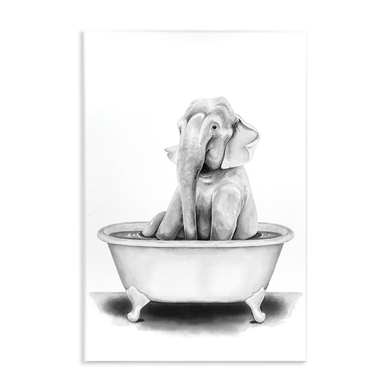 Elephant in a Tub Funny Animal Bathroom’ by Rachel Neiman – Drawing Print