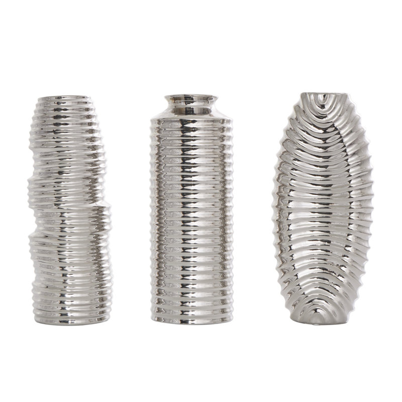 Elleigh Ceramic Dimensional Ribbed Decorative Vase with Varying Shapes Set