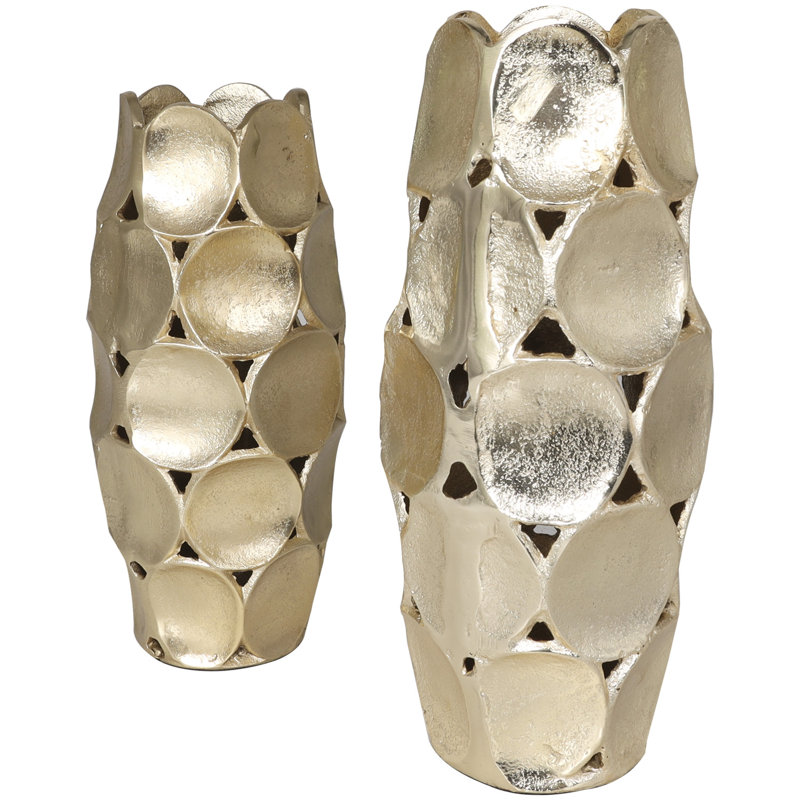 - The asymmetrical shape of the vases showcases circular plates throughout, giving them a dimensional and eye-catching look
