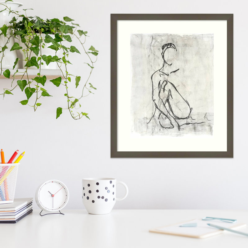 Art Description: this simple contour line drawing of a female nude has a museum quality to it. In the print, the figure is seated, and while it is incomplete, you get the suggestion of her grace and b…. Read More.