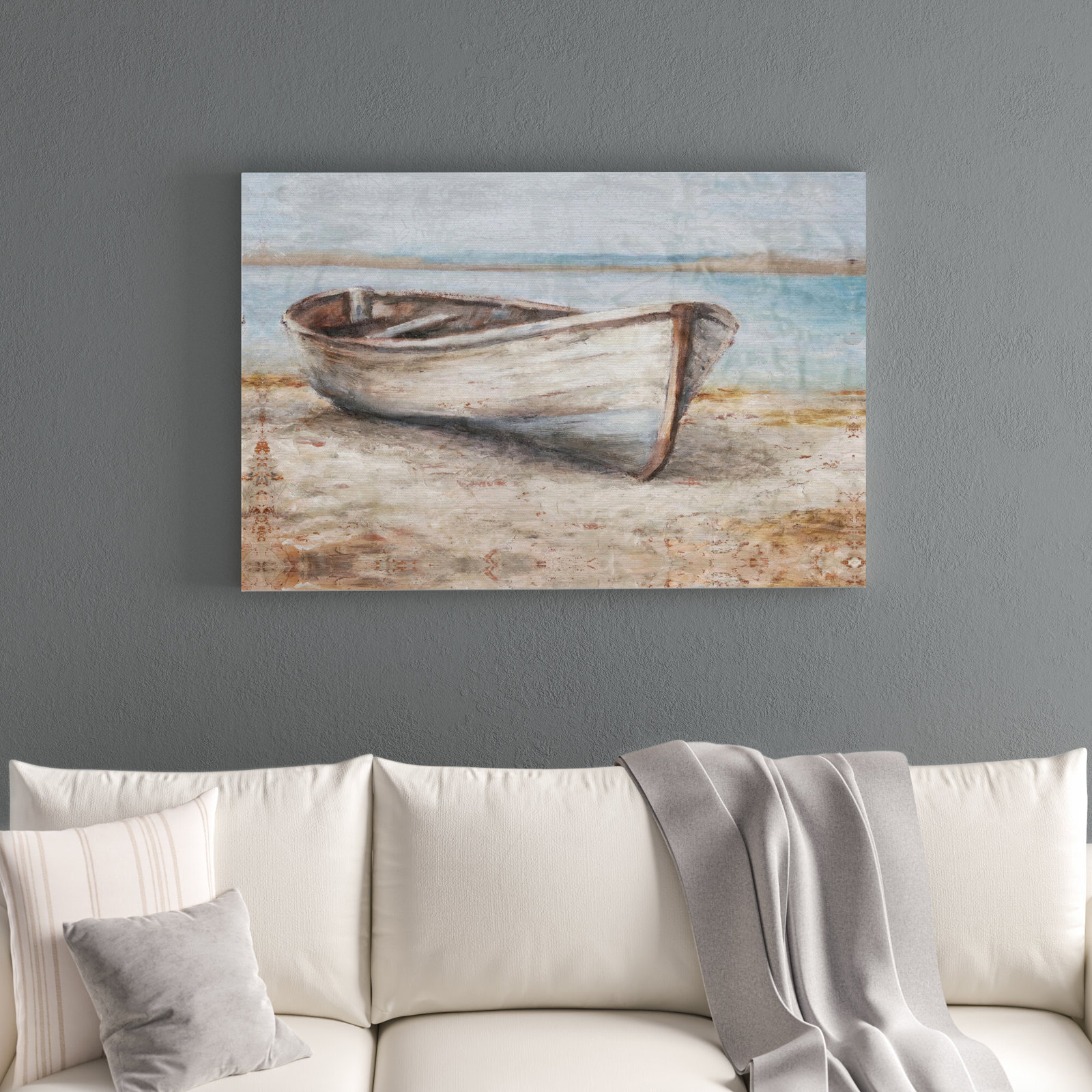This painting print is just the right accent for your coastal-themed living room or guest room. It’s premium giclee printed by hand for a crisp and clear recreation. The image depicts a whitewashed, weathered dinghy ashore on a calm beach in greens, blues, and beiges. This wall art comes with mounting hardware, so it’s ready to style right out of the box – hang it above your sofa or headboard for a charming yet calming vibe.