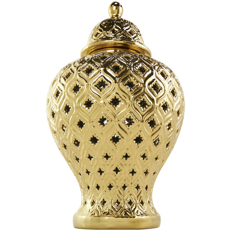 Transform your living room with the striking decorative container, a perfect centerpiece for your tables. Designed with felt or rubber stoppers at the base that prevent scratching furniture and table tops, as well as sliding around. This item ships in 1 carton. Please note that this item is for decorative purposes only and is not food safe. Ceramic decorative jars make a great gift for any occasion. Suitable for indoor use only. This item ships fully assembled in one piece. This is a single colored decorative containers. Traditional style. Vase has a 3.90 in mouth opening.