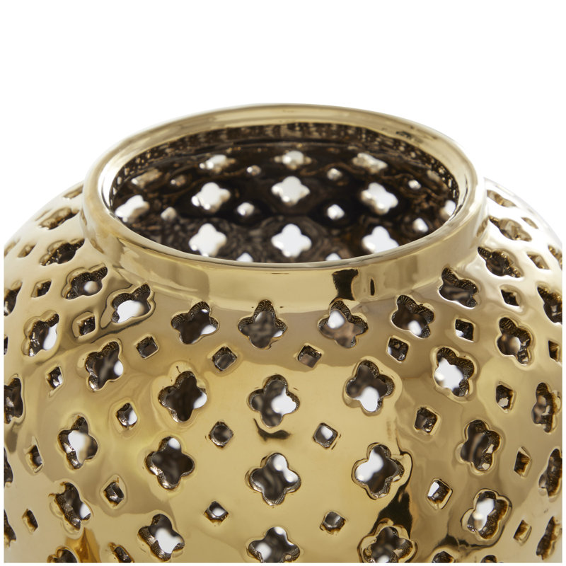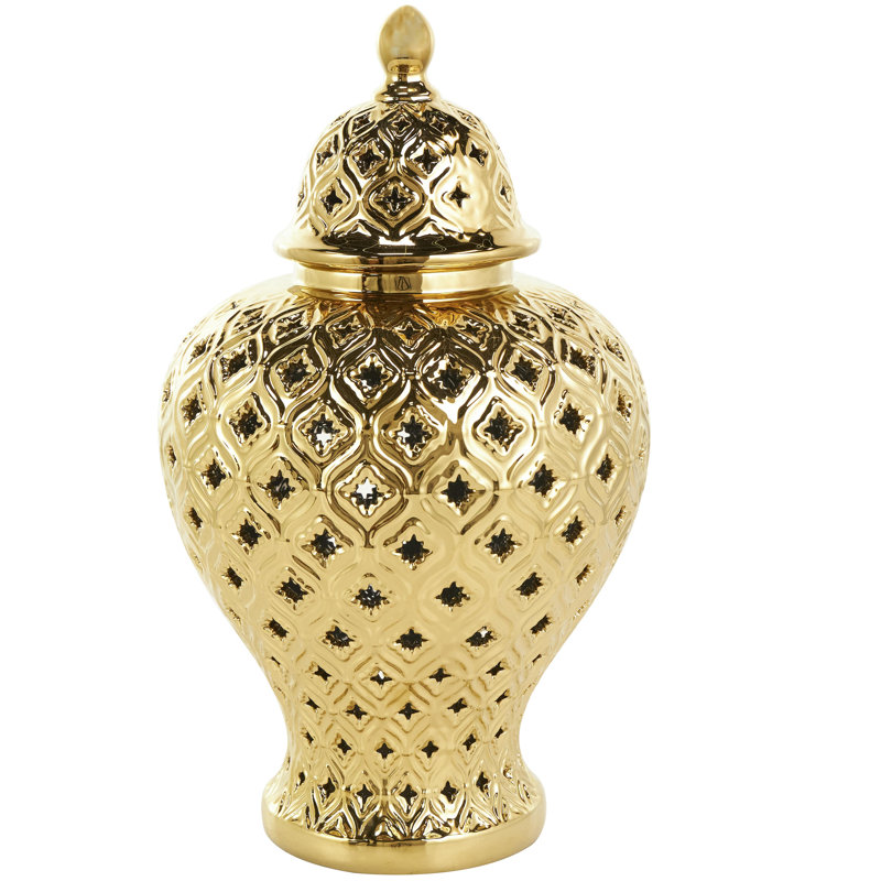 Estarlin Ceramic Decorative Jars with Geometric Cutout Design and Lid